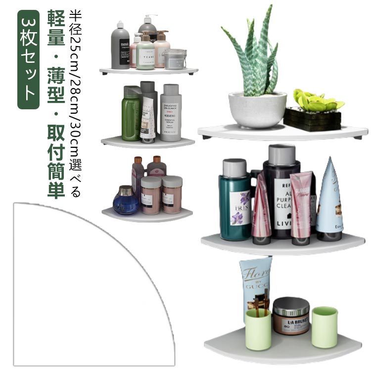 ■取付簡単 壁面ラック 壁掛け 【3枚セット】 棚収納 棚板 整理整頓 ラック コーナー 飾り棚 防水 防湿 壁掛け棚 壁面収納 角 コーナーシェ