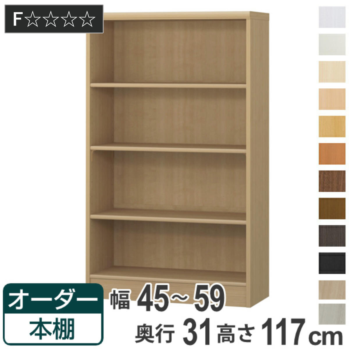 ■オーダー本棚 標準棚板タイプ 幅45-59cm 奥行31cm 高さ117cm ( 本棚 オーダー オーダーメイド 収納棚 壁面収納 日本製 書棚 ラック フリ