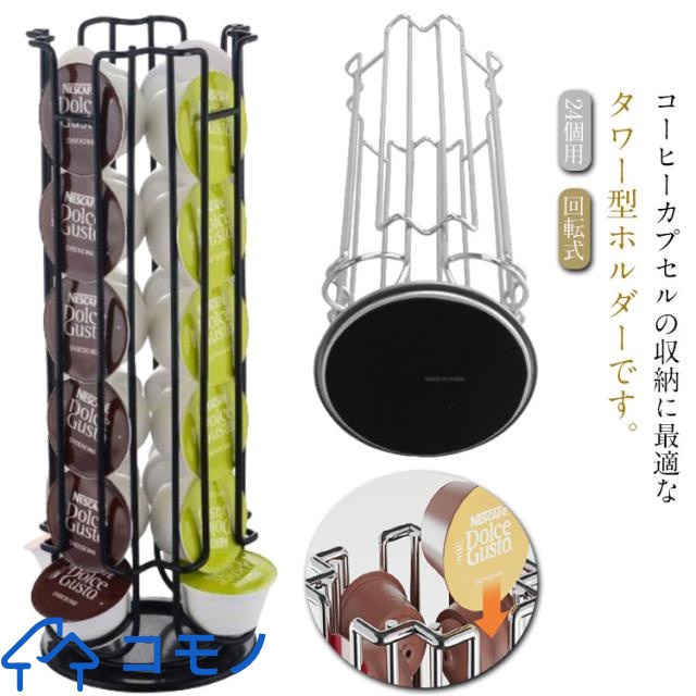 ■カプセルホルダー ラック 24個用 回転式 コーヒーカプセルスタンド 収納ラック 収納スタンド カプセルタワー ブレイクタイム 省スペース