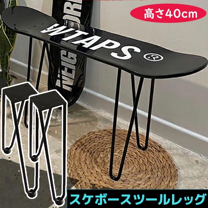 ■スケボー スツール 脚 スケートボード 40cm スケボー イス ベンチ チェア テーブル 椅子 パーツ ラック おしゃれ デッキ 鉄 アイアン 黒