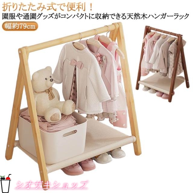 ■木製 キッズハンガーラック 折りたたみ 幅約79cm ハンガー ラック キッズ 折りたたみ ハンガーラック 子供服 ハンガーポール 洋服掛け 頑