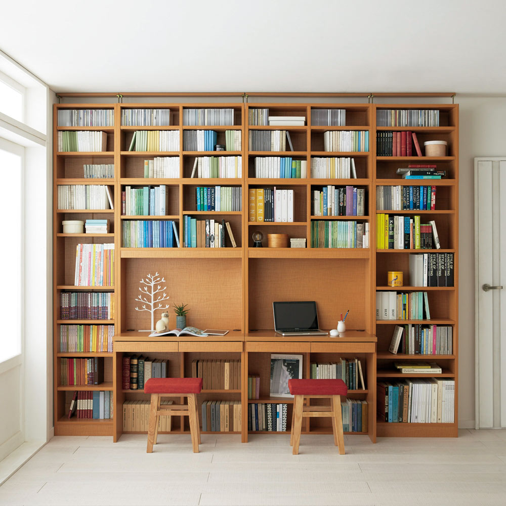 収納力抜群!棚板は1.5cmピッチで調整できるので様々な本をインテリアのように収納できます。フルオープン設計で、検索性も抜群の壁面収納が完成します。