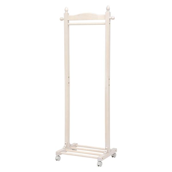 ■ハンガーラック 幅60×奥行40×高さ154cm 白 ホワイトウォッシュ 木製 棚板 キャスター付き コートハンガー 組立式 ベッドルーム
