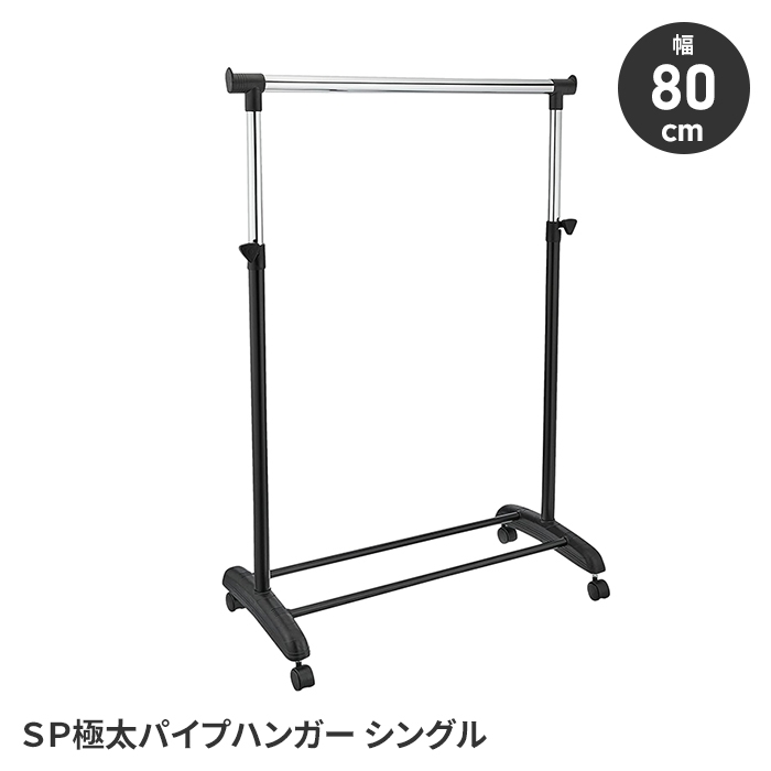 ■ハンガーラック キャスター付き 幅80 極太パイプ コートハンガー 頑丈 衣類ハンガー 省スペース シングル 便利 室内 物干し
