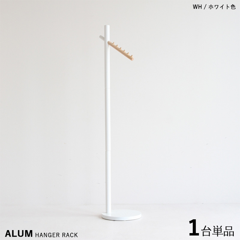 ■ALUM-PH アルム ポール ハンガーラック【1台単品】ホワイト色 / 全3色 天然木 コートハンガー キッズサイズにもなる スリムタイプ 組立品