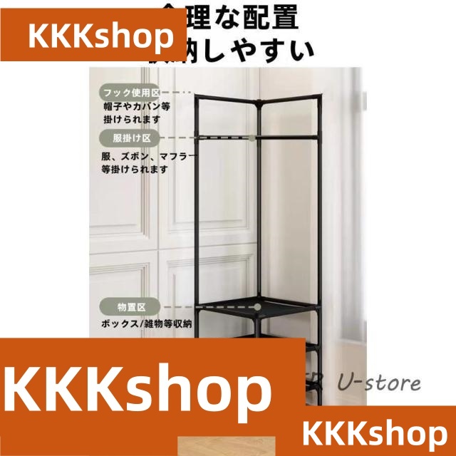 ハンガーラック コーナータイプ 省スペス 頑丈 コートハンガー おしゃれ 子供部屋 衣類ハンガー 棚付き コート掛け 洋服掛け 衣類収納 ボックス収納 玄関 収納 45*45*180cm