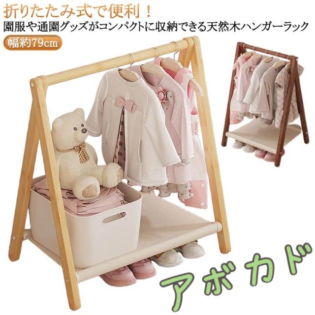 ■ハンガー 折りたたみ 子供服 コートハンガー ラック キッズハンガーラック 木製 幅約79cm ハンガーラック 子供 キッズ 洋服掛け ハンガー