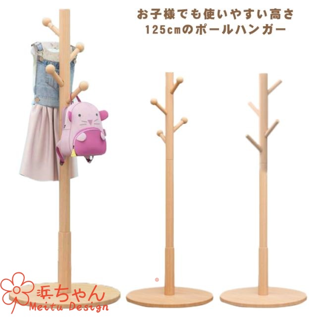 子供用 ハンガーラック スリム 木製 キッズ コートハンガー 太 ポールスタンド ポールハンガー 丸 土台 衣類収納 洋服 コート アウター 上着 収納 片付け 帽子掛け 北欧 おしゃれ 玄関 リビング 子供部屋 インテリア