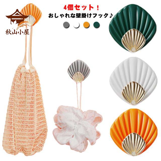 おしゃれ 上品 フック 壁掛け 壁がけ 収納 フック 4個セット ウォールフック バッグ 帽子 コート掛け コートハンガー 玄関 衣類収納 鞄 カバン かばん 鍵 傘 収納 壁 ドア 貼り付け 両面テープ 送料無料