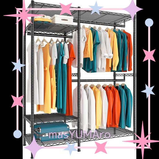 ■KANOUHOPE ワードローブ ハンガーラック コートハンガー 衣類収納 省スペース コート掛け 棚板高さ調節 大容量 棚付き おしゃれ (ブラッ