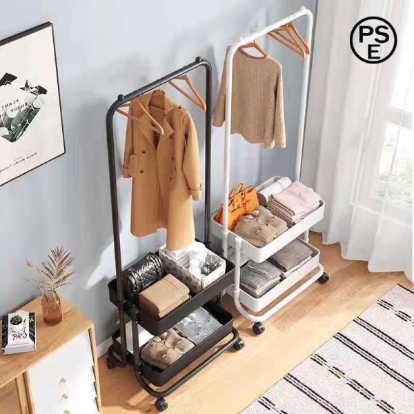 ■ハンガーラック 棚付き キャスター付き バスケット付き トローリー収納 Welina コートハンガー 子供部屋/玄関に 多機能 大容量 おしゃれ