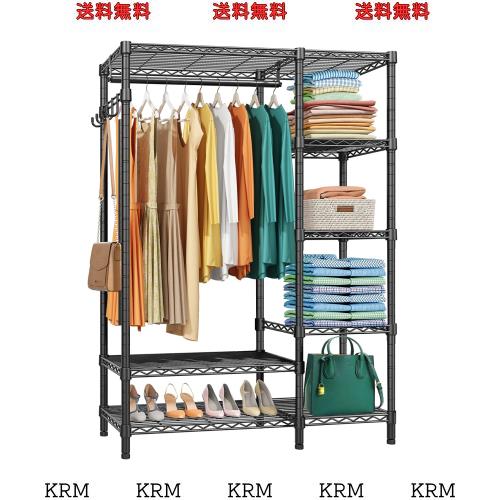 ■KANOUHOPE ワードローブ ハンガーラック コートハンガー 衣類収納 省スペース コート掛け 棚板高さ調節 大容量 棚付き おしゃれ (ブラッ