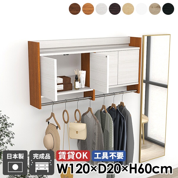 サイズ:約幅1200 奥行200 高さ600 mm扉内寸(1箇所あたり):約幅570 奥行155 高さ354 mm板厚:20 mmパイプ:直径25 mm材質:[本体]プリント化粧合板 [ハンガーパイプ]ステンレスカラー:8色※閲覧環境によって、実際の色と異なって見える場合がございます。重量:約13.6kg耐荷重:約8kg(本体重量を除く)日本製完成品壁掛け用フック6個付属ブランド:arne送料無料※北海道・沖縄・離島は送料別途お見積もり。【ご注意】離島・郡部など一部配送不可地域あり。配送不可地域は通常配送便での玄関渡し。吊上げ作業等が必要な場合や、建物の形態による追加料金はお客様ご負担です。