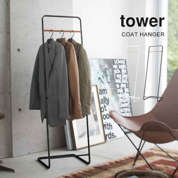 ■コートハンガー スリム おしゃれ 北欧 タワー tower 玄関 狭い ハンガーラック 省スペース 壁掛けスタンド 山崎実業 スタイリッシュ モダ