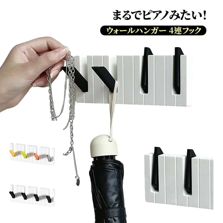 ■壁掛けフック 4連 壁掛け 帽子掛け ピアノみたい! 北欧 コートハンガー ウォールハンガー 折りたたみ ハンガー ピアノみたい! ウォール