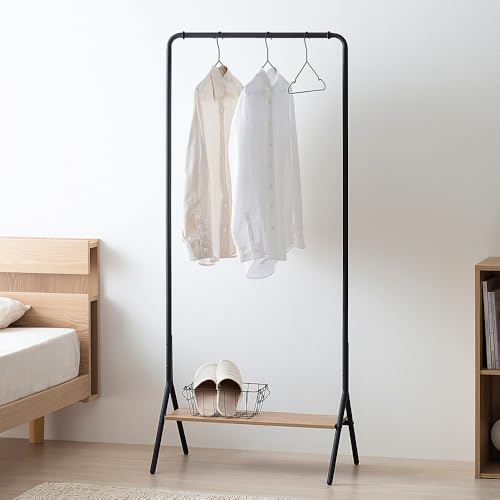 ■アイリスオーヤマ スペパ ハンガーラック コートハンガー おしゃれ 北欧 スリム 棚付き ハンガーラック ナチュラル/ブラック アイリスオ