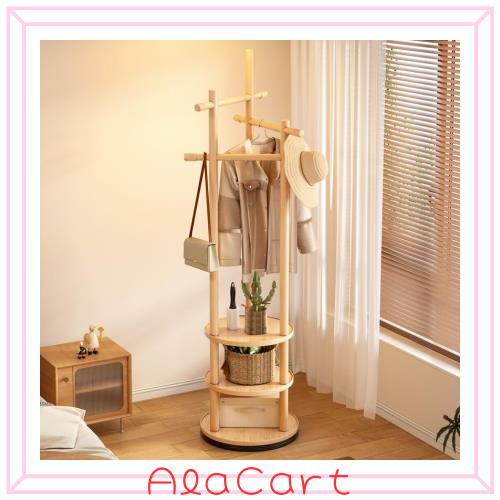 ■PonyLes ポールハンガー 木製 3段棚付き 回転可能 省スペース おしゃれ 組立簡単 スリム ハンガーラック コートハンガー 服かけスタンド