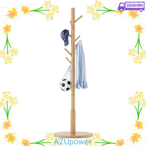 ■AIBIJU ハンガーラック スリム おしゃれ コートハンガー 天然木 4段 高さ180CM ポールハンガー 衣類収納 8フック 頑丈な円形ベース 帽子