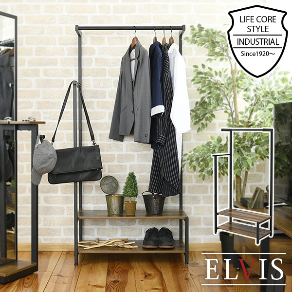 ■ハンガーラック コートハンガー ダブル 棚 付き 衣類収納 洋服収納 衣類 服 西海岸 ヴィンテージ インダストリアル 幅76 奥行46 高さ16