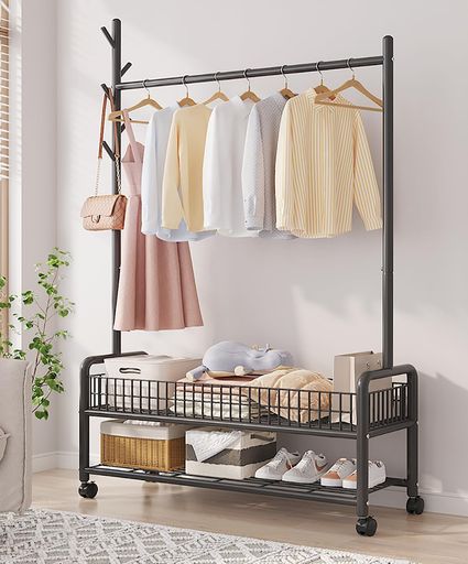 ■ハンガーラック キャスター付き 通販 KR-3368 ハンガー ラック 洋服掛けラック ハンガー掛け コートハンガー バスケット付き ランドセル
