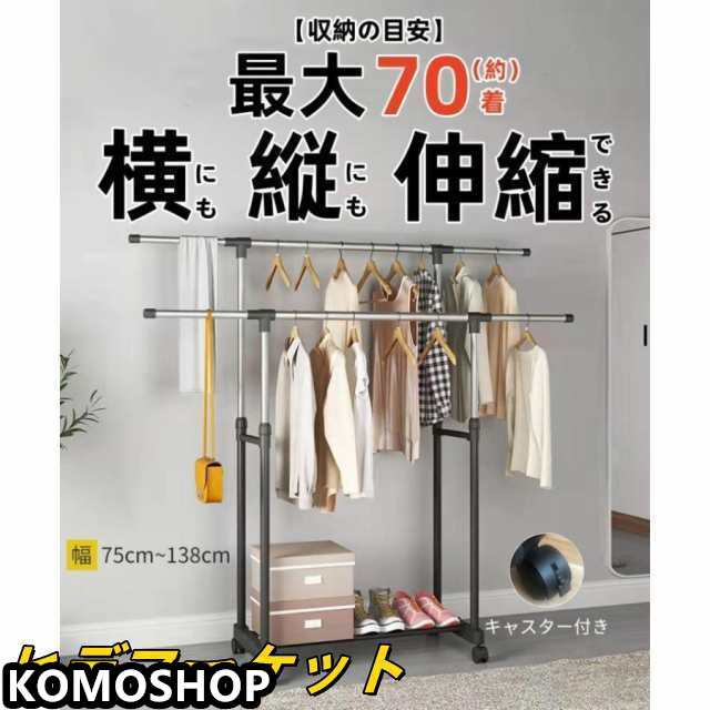 ハンガーラック パイプハンガーラック 頑丈 伸縮 衣類収納 洋服掛けラック 洋服収納 キャスター付き コートハンガー コンパクト収納 部屋干し
