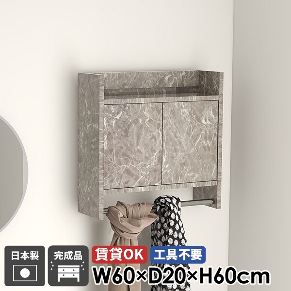 ■コートハンガー ウォールラック ウォールシェルフ ハンガーラック 壁掛けハンガーラック 洗面所 大理石柄 キャビネット 扉付き 玄関 棚付