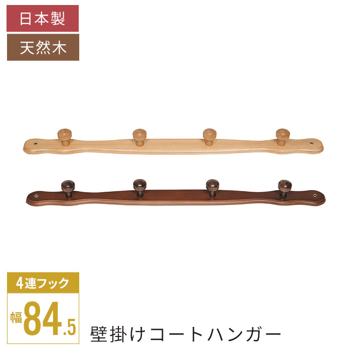 ■【値下げ】コートハンガー 壁掛け 4連フック 天然木 木製 杉 日本製 玄関 おしゃれ 壁 洋服掛け ハンガーフック コート掛け