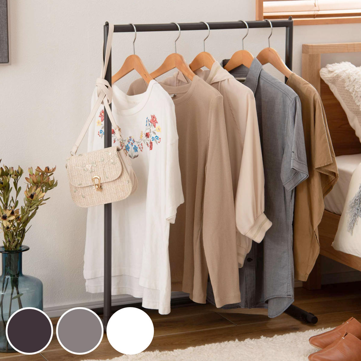 ■商品説明 美しさと機能性を兼ね備えた、シンプルながらも深みのあるデザインのハンガーラック。サイドのハンガーや2枚の固定棚で、収納できるものは多種多様。雰囲気のあるインダストリアルスタイルを気軽にお楽しみいただけます。■本体サイズ[外寸]幅75×奥行45×高さ160cm■その他サイズ[内寸] (ハンガー大)幅71×高さ126cm (ハンガー小)奥行33×高さ118.5cm (フック)出幅4cm (棚間)幅71×奥行33×高さ21cm (脚間)幅71×奥行33×高さ6.5cm■材質[フレーム]スチール(粉体塗装)[棚板]合成樹脂化粧パーティクルボード(メラミン樹脂)■収納量・耐荷重【耐荷重】 [ハンガー大]約10kg以下 [ハンガー小]約7kg以下 [棚]各約10kg以下【収納数】 [ハンガー大]約14〜23着 [ハンガー小]約6〜10着■備考・六角レンチ同梱・商品によって色味や木目などの風合いが異なります。■生産国中国■組立時間(目安)(大人2人)お客様組立(25分)