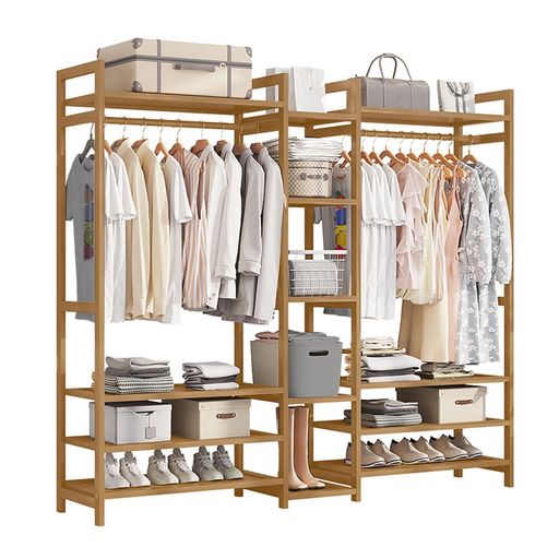 ■PASRLD ハンガーラック 天然竹製 ワードローブ クローゼット コートハンガー オープン 棚付き 衣類収納棚 洋服掛け 大容量 頑丈 (A/170*3
