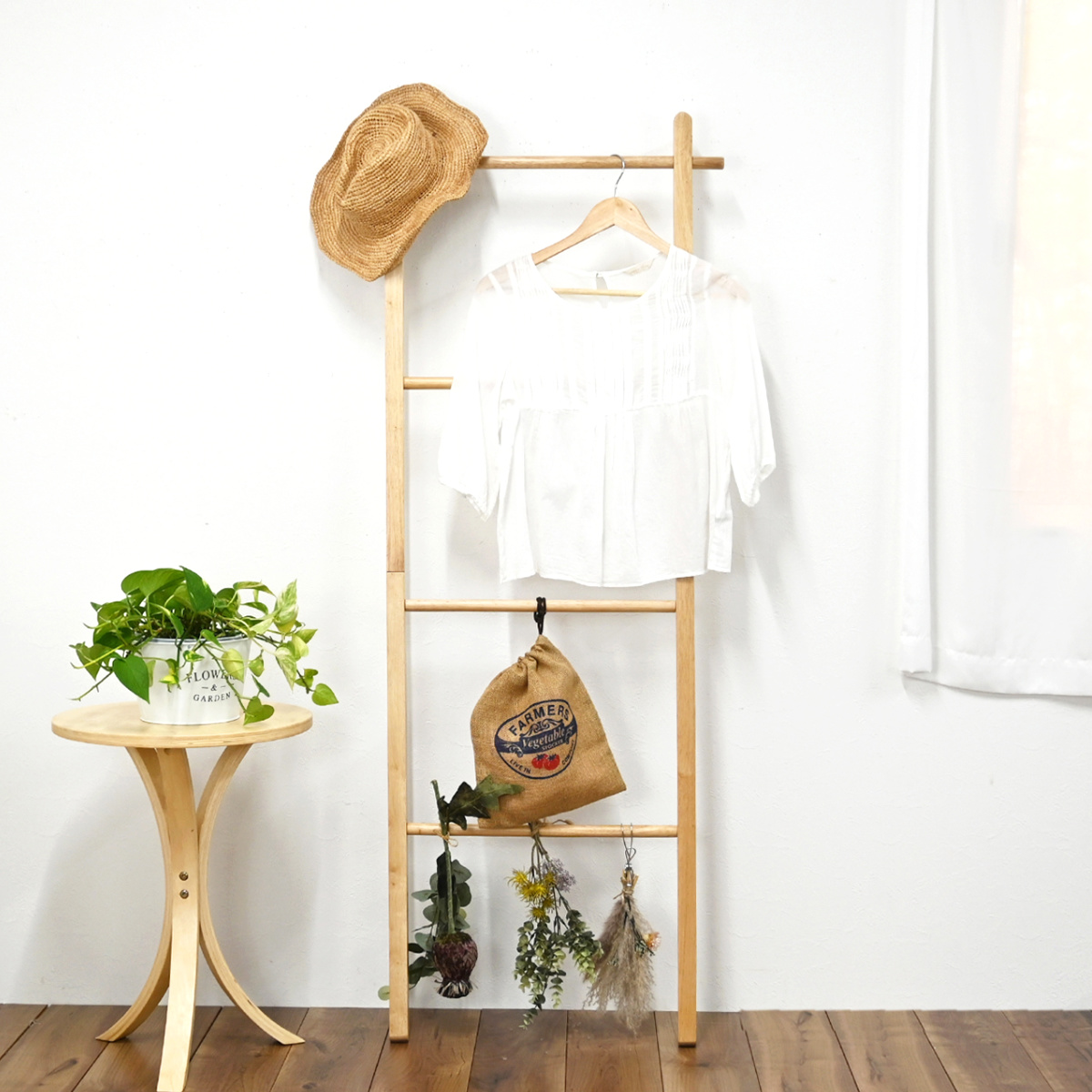 ■ラダーハンガー 幅59cm 天然木 木製 折りたたみ 省スペース スリム おしゃれ ( ラダー ハンガー コートハンガー 衣類掛け ラック はしご