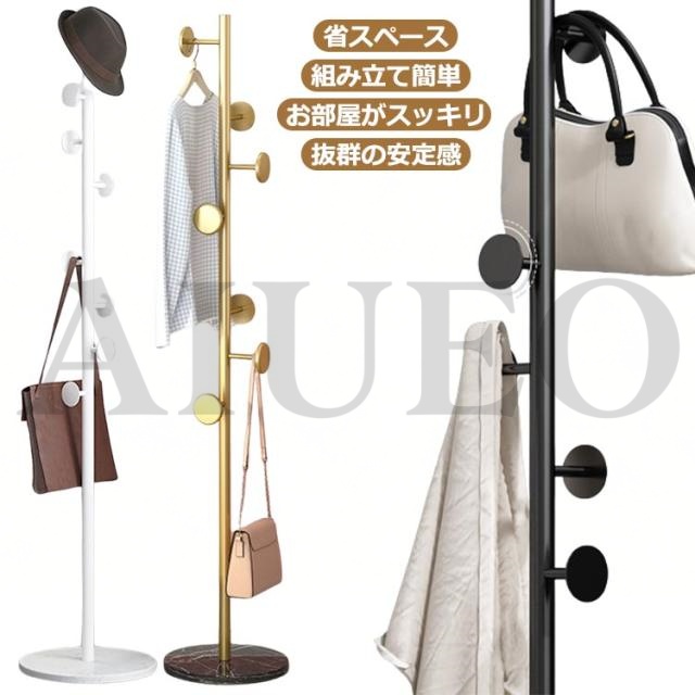 ■ハンガーラック おしゃれ 白 姫系 かわいい 可愛い フェミニン 省スペース コートハンガー コート掛け ワンピース 室内 ゴールド 新生活
