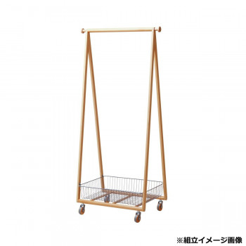 ■ハンガーラック 幅50cm ライトブラウン 木製 ラバーウッド 収納台付き スリム コートハンガー リビング ベッドルーム ハンガーラック 幅5