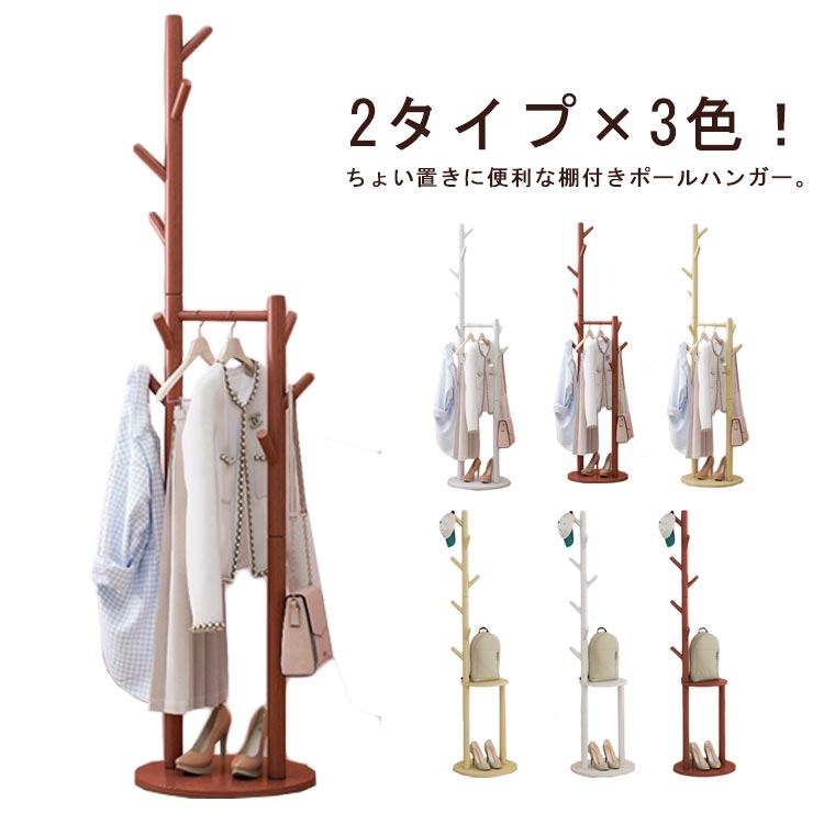 ■棚付き インテリア ハンガーラック おしゃれ スリム キッズ 省スペース コートハンガー 北欧 木製 省スペース 子供 大人 洋服掛け 収納