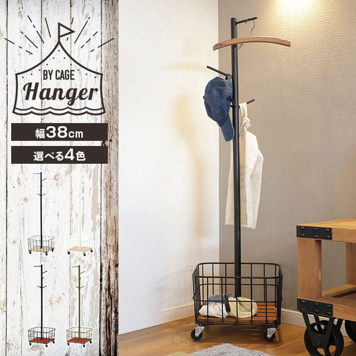 ■【値下げ】ポールハンガー 収納カゴ付き 省スペース 幅38 高さ138 ハンガーラック 洋服掛け コートハンガー 低め 木製 スチール キャスタ