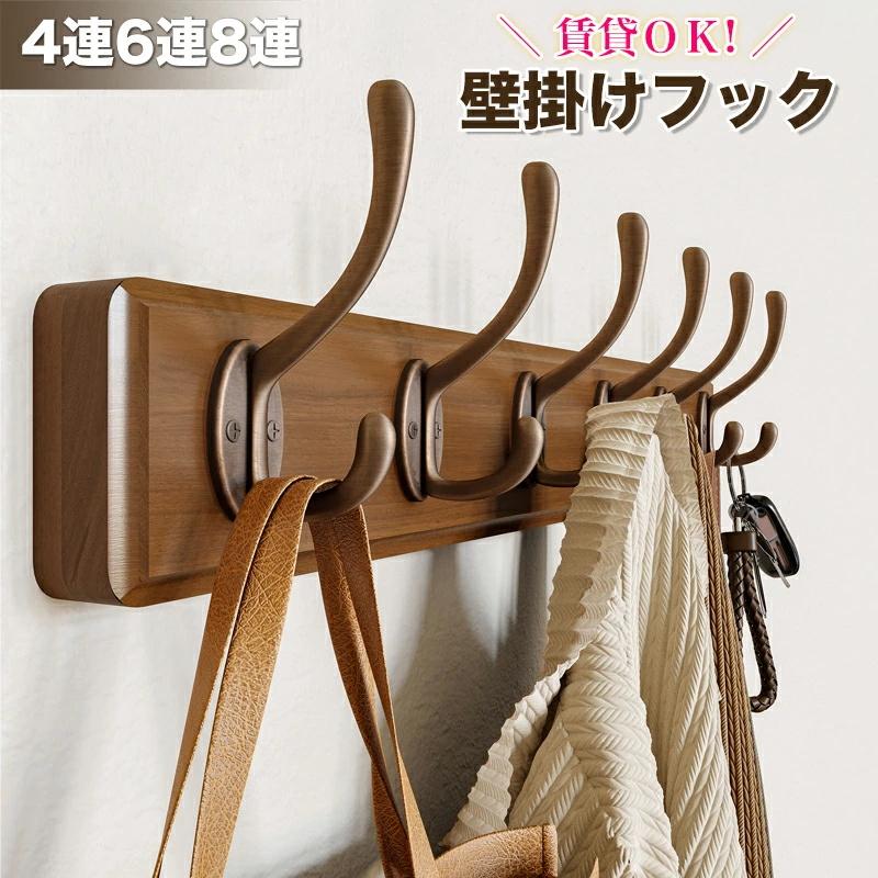 ウォールハンガー 壁掛けフック ウォールフック コートハンガー 賃貸 壁掛け 木製 4連6連8連 玄関 北欧 スリム 壁 キッズ 壁付け 頑丈 コンパクト 収納 木 洋服