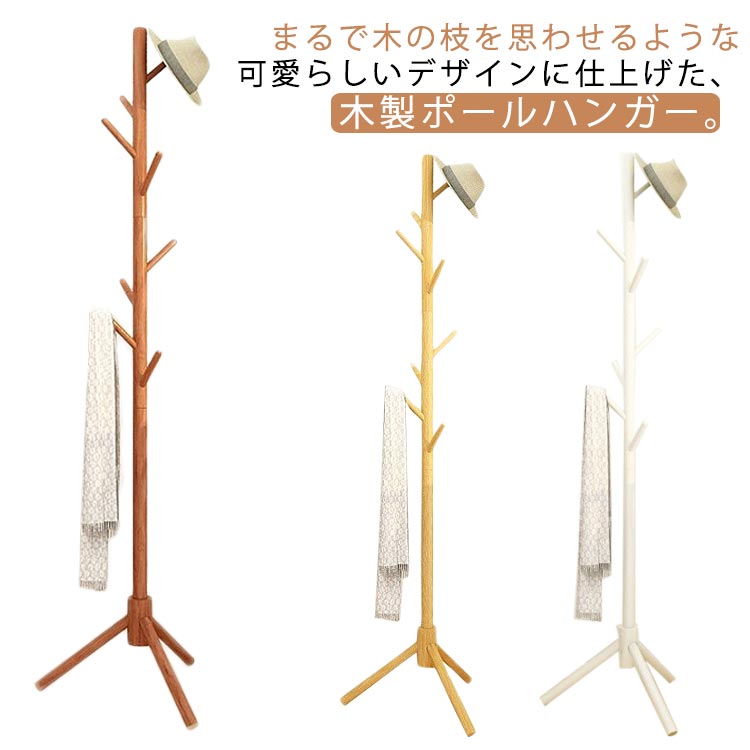 商品説明 コートハンガー 木製 ポールハンガー 衣類掛け ハンガーラック コート掛け カバン掛け 帽子掛け 省スペース 子供部屋 洋服掛け シンプル