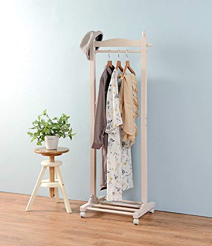 ■萩原 ハンガーラック コートラック コートハンガー キャスター付き 【収納力と使いやすさの両立】 衣類収納 天然木 木製 ホワイト 幅60cm