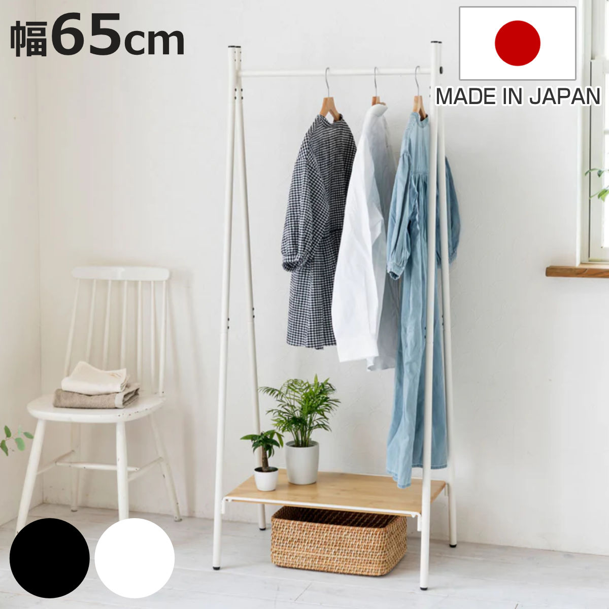 ■ハンガーラック 燕三条製 RACK A シェルフボード 棚付 幅65cm ( アジャスター付き ポールハンガー コートハンガー 省スペース 収納 ハン