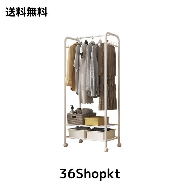 ■UNHO ハンガーラック スリム コートハンガー キャスター付き 洋服ラック 2段 白 コート掛け 頑丈 パイプハンガー 棚付き おしゃれ ホワイ