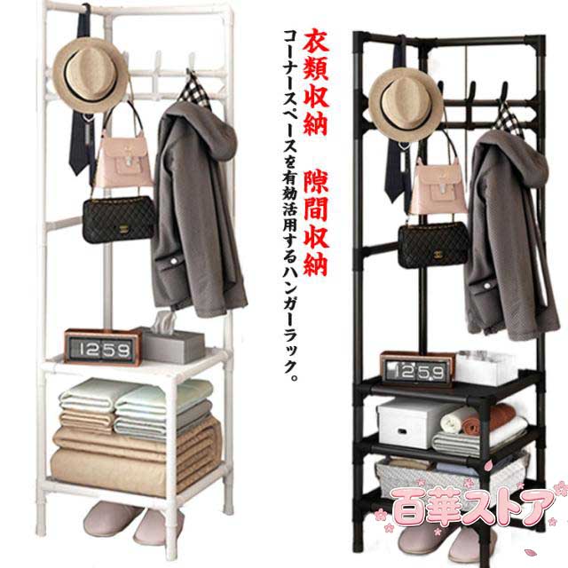 ハンガーラック コーナー コートハンガー 衣類ハンガー 洋服ラック スリム 棚付き コート掛け 洋服掛け 衣類収納 コーナーハンガー ボックス収納 玄関 子供部屋 収納 省スペース 大容量 黒 白 隙間収納 ワンルーム ハンガーラック