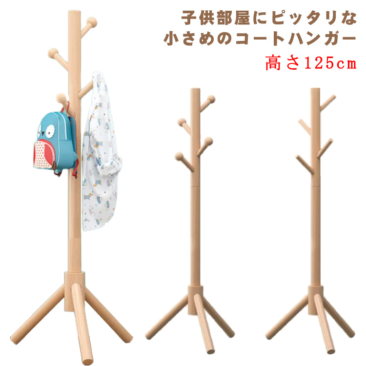 ■ハンガーラック 高さ125cm 子供 キッズ コートハンガー 木製 スリム ポールスタンド ポールハンガー 衣類収納 洋服 コート アウター 上着