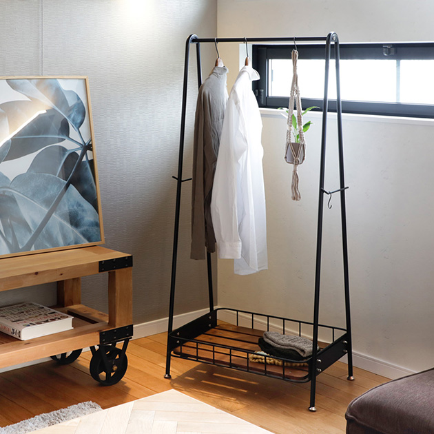 [材質]:フレーム:スチール(直径15.9mm)、紛体塗装カゴ:スチールフレーム(直径7mm・5mm)、紛体塗装底板:天然木(パイン材)、塗装[カラー]:ブラック、イエロー、ホワイト[商品サイズ]:幅61.5×奥行45×高さ138cm[梱包重量]:9kg[生産国]:中国[特徴]:・ヨーロッパの昔ながらの自転車カゴをイメージした、おしゃれなハンガーラック。パインウッドとアイアンを組み合わせた、クールな佇まいがステキです。・足元には大容量の収納カゴがあり、バッグや小物などを整理しておくのに便利。サイドのバーは帽子やストールなど身の回りの物を掛けるのにご使用いただけます。コンパクトでありながら充実した収納力が魅力です。・お部屋に置いたときに圧迫感が出ないよう、高さを1.4mに抑えて目線を遮らないようなデザインになっています。シンプルなので、お部屋を選ばずお使いいただけます。※ハンガー耐荷重:約15kg[組立て]:組立品[ご注意]:大型商品の為他商品との同梱不可