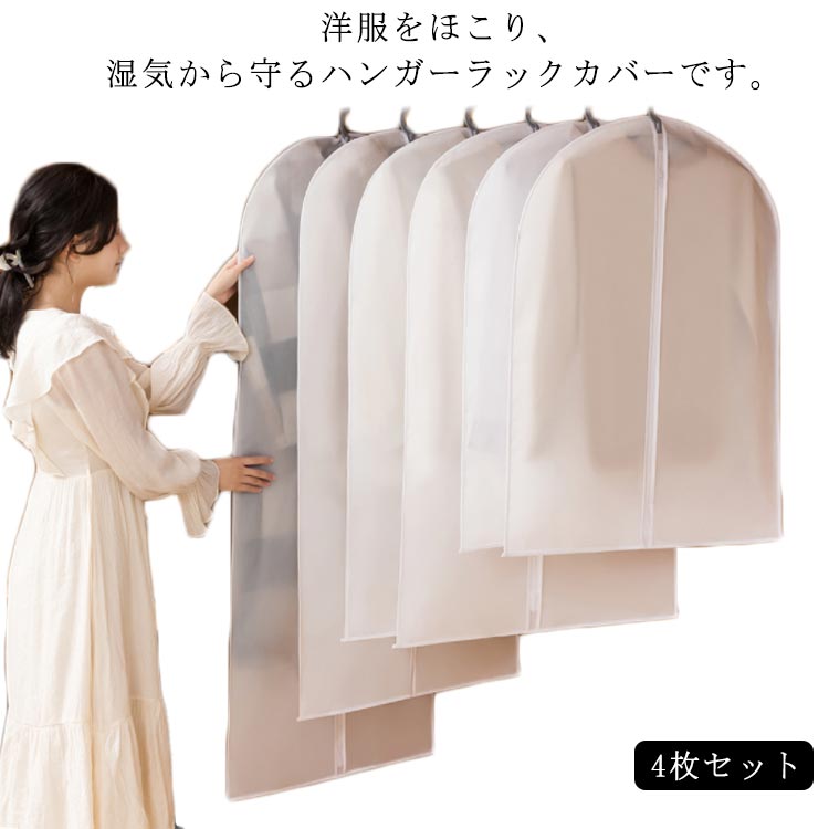 ■4枚組 コートハンガー 衣類カバー ほこりよけ カバー パイプハンガーカバー 衣類カバー 前開き ファスナー 防塵 防虫 防湿 防カビ 半透明
