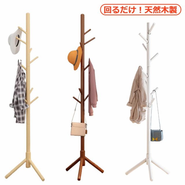 ■ポールハンガー 木製 ポーチラック ( ハンガーラック コートハンガー 収納 天然木 360度回転 洋服掛け コート掛け ポールスタンド 高さ1