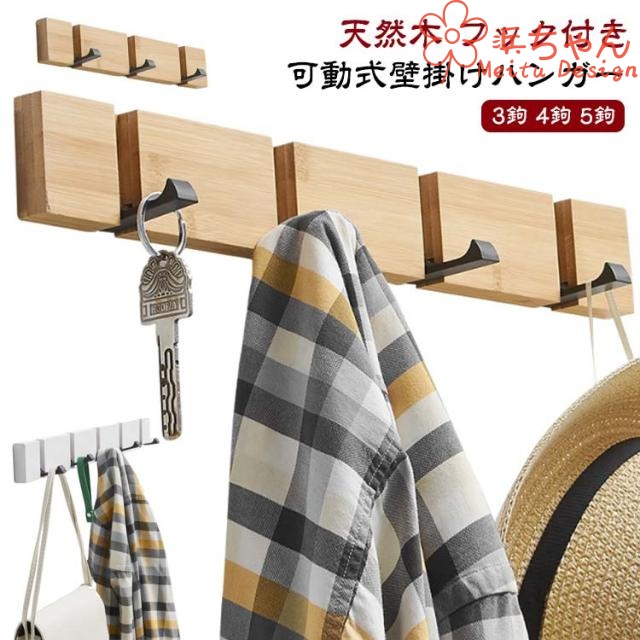 ■ウォールハンガー 壁掛け ハンガーフック コートハンガー 壁面コートハンガー 壁面収納 可動式壁掛けハンガー フック付き 天然木 フック