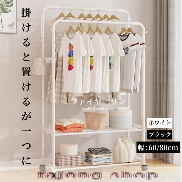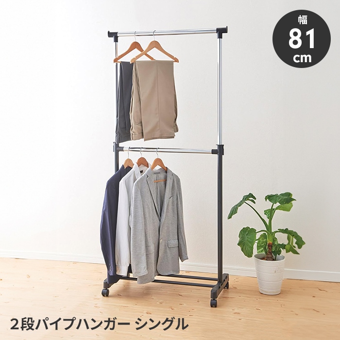 ■ハンガーラック 2段 キャスター付き 幅81 大容量 コートハンガー 頑丈 衣類ハンガー 省スペース ダブル 便利 室内 物干し