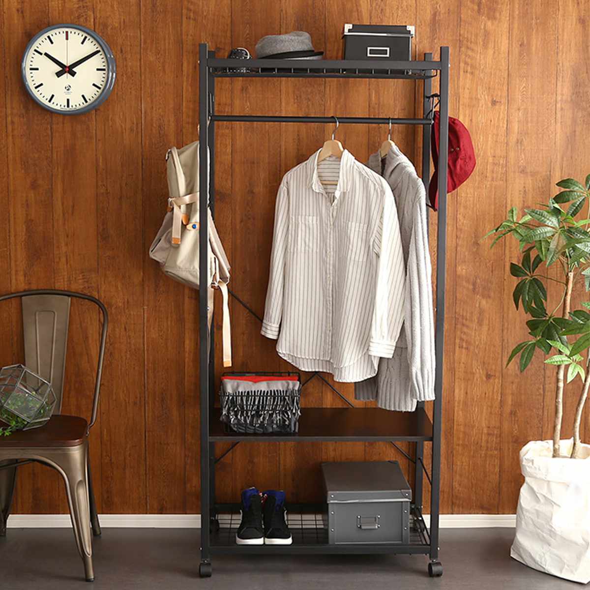 ■ハンガーラック Lacatas 幅75cm キャスター付き 可動棚 ( 高さ調節可能 棚付き スチールフレーム コートハンガー コート掛け 衣類収納