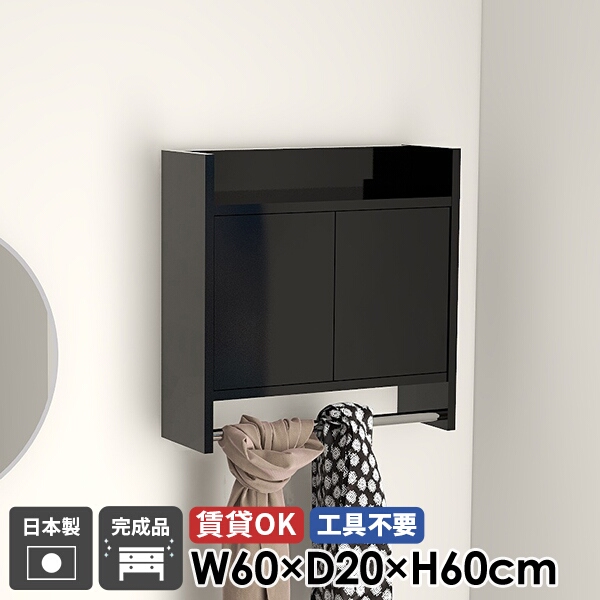 ■コートハンガー ウォールラック ウォールシェルフ ハンガーラック 壁掛けハンガーラック 洗面所 ブラック キャビネット 扉付き 玄関 黒
