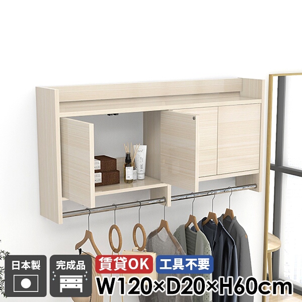 サイズ:約幅1200 奥行200 高さ600 mm扉内寸(1箇所あたり):約幅570 奥行155 高さ354 mm板厚:22 mmパイプ:直径25 mm材質:[本体]メラミン樹脂化粧合板 [ハンガーパイプ]ステンレスカラー:ホワイトウッド※閲覧環境によって、実際の色と異なって見える場合がございます。重量:約13.6kg耐荷重:約8kg(本体重量を除く)日本製完成品壁掛け用フック6個付属ブランド:arne送料無料※北海道・沖縄・離島は送料別途お見積もり。【ご注意】離島・郡部など一部配送不可地域あり。配送不可地域は通常配送便での玄関渡し。吊上げ作業等が必要な場合や、建物の形態による追加料金はお客様ご負担です。