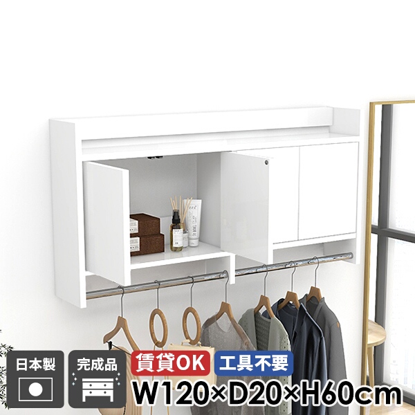 ■壁掛けハンガーラック ウォールシェルフ コートハンガー ウォールラック ハンガーラック 白 扉付き ホワイト 玄関 洗面所 キャビネット